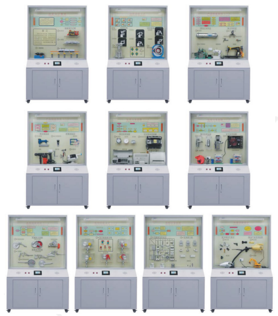 5、柜頂部裝有照明日光燈,柜背設(shè)有對開門,有利維護設(shè)備和方便維修。柜下部設(shè)有柜箱,方便存放單個模型、實驗箱及相關(guān)實驗文檔。柜底裝有萬向輪,方便移動,符合人機工程要求。